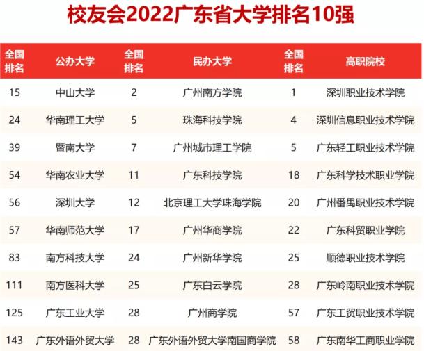 2022广东高校排名最新更新: