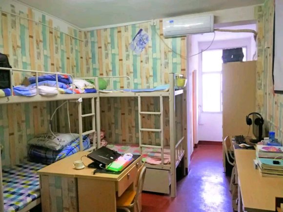 2、寝室分为4人寝,有单独卫浴和衣柜。6、7人寝与4人寝格局、大小一样,有单独卫浴,公用一个长衣柜。新建的女寝,情况就不清楚了。