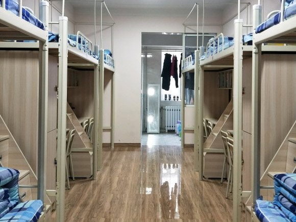 3.宿舍八人间,一进门门口是两个上下铺,然后有四个上床下桌。