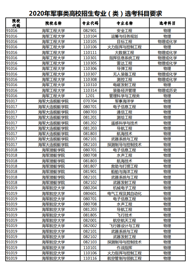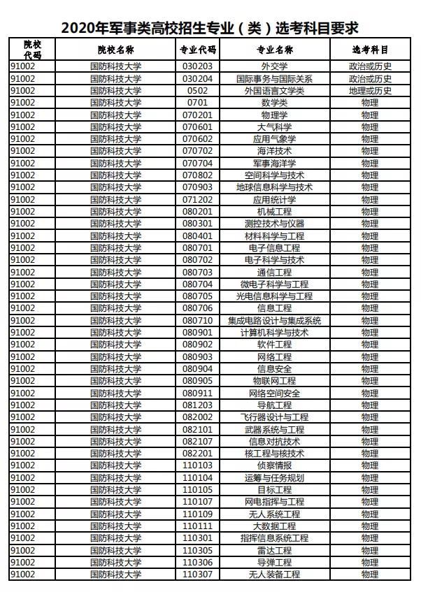 在传统高考中,军校院校也是主要招生理科生。非指挥类专业几乎全部为工科(少部分理科),如通信工程、机械工程、武器类等专业,大部分都要求选考物理。因为现在的军队,需要高科技的装备,科技强军,需要用到物理学科知识。
