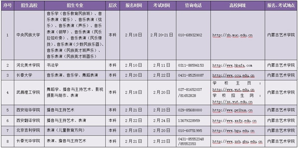 内蒙古:2024年在我区设点组织校考的招生高校和招生专业