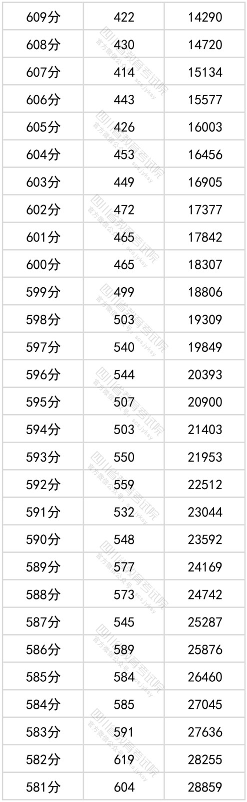 四川省2024年普通高考理科成绩分段统计表出炉!
