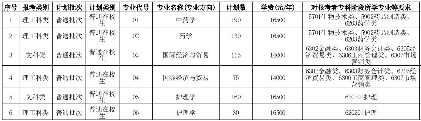 3.对专科所学专业、专业基础课不符合招生要求的,我校原则上不予录取。