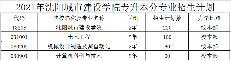 2021年沈阳城市建设学院专升本招生简章