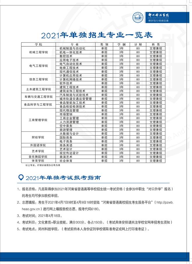 第一章 总则第一条 为保证学院2021年招生工作顺利进行,规范招生行为,维护学校和考生合法权益,根据《中华人民共和国教育法》、《中华人民共和国高等教育法》和《河南省教育厅关于做好2021年高等职业教育单独考试招生和高技能人才免试入学工作的通知》等有关文件规定,结合目前的疫情防....
