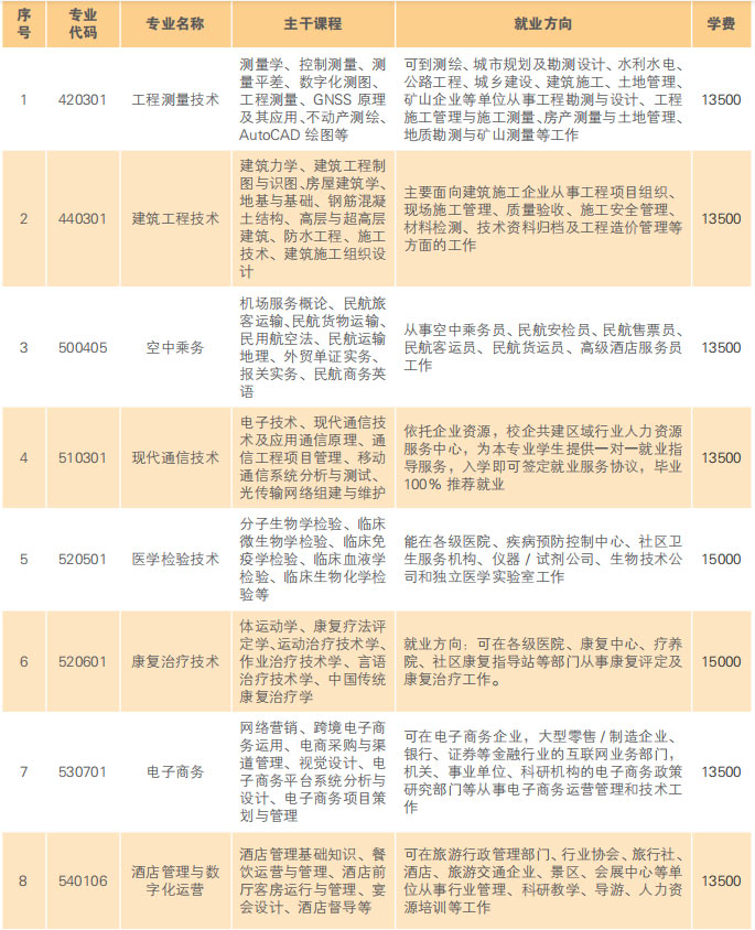 出国通道:学校与美国、加拿大、澳大利亚、新西兰、德国、日本、韩国、泰国等国家 50 余所高校及机 构建立了合作关系,为学生提供了丰富的海外实习就业及升学(专升本、本升硕)渠道。