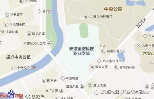 安徽国防科技职业学院是一所安徽省人民政府主办、安徽省委军民融合发展委员会办公室管理的公办高等职业院校。位处合肥经济圈核心城市、国家级园林城市——六安市区,紧邻市政府,周边中央公园、滨河公园环绕,环境优美。学校距合肥新桥机场仅45分钟车程,至合肥市中心的动车仅需24分钟,市内火车站、各汽车站均有公交直达学校,交通十分便捷。