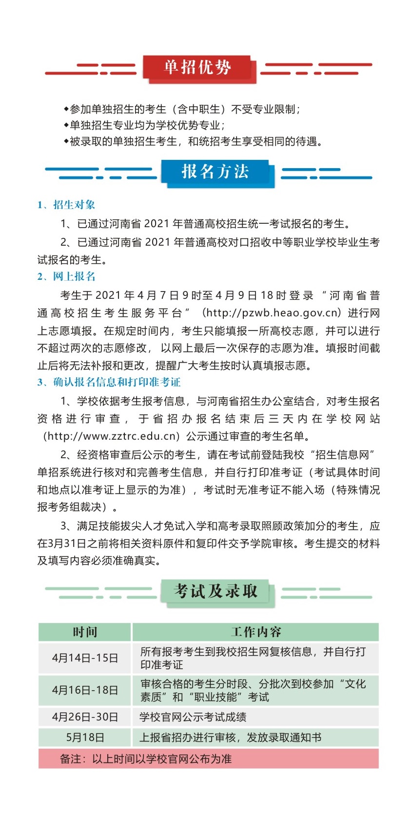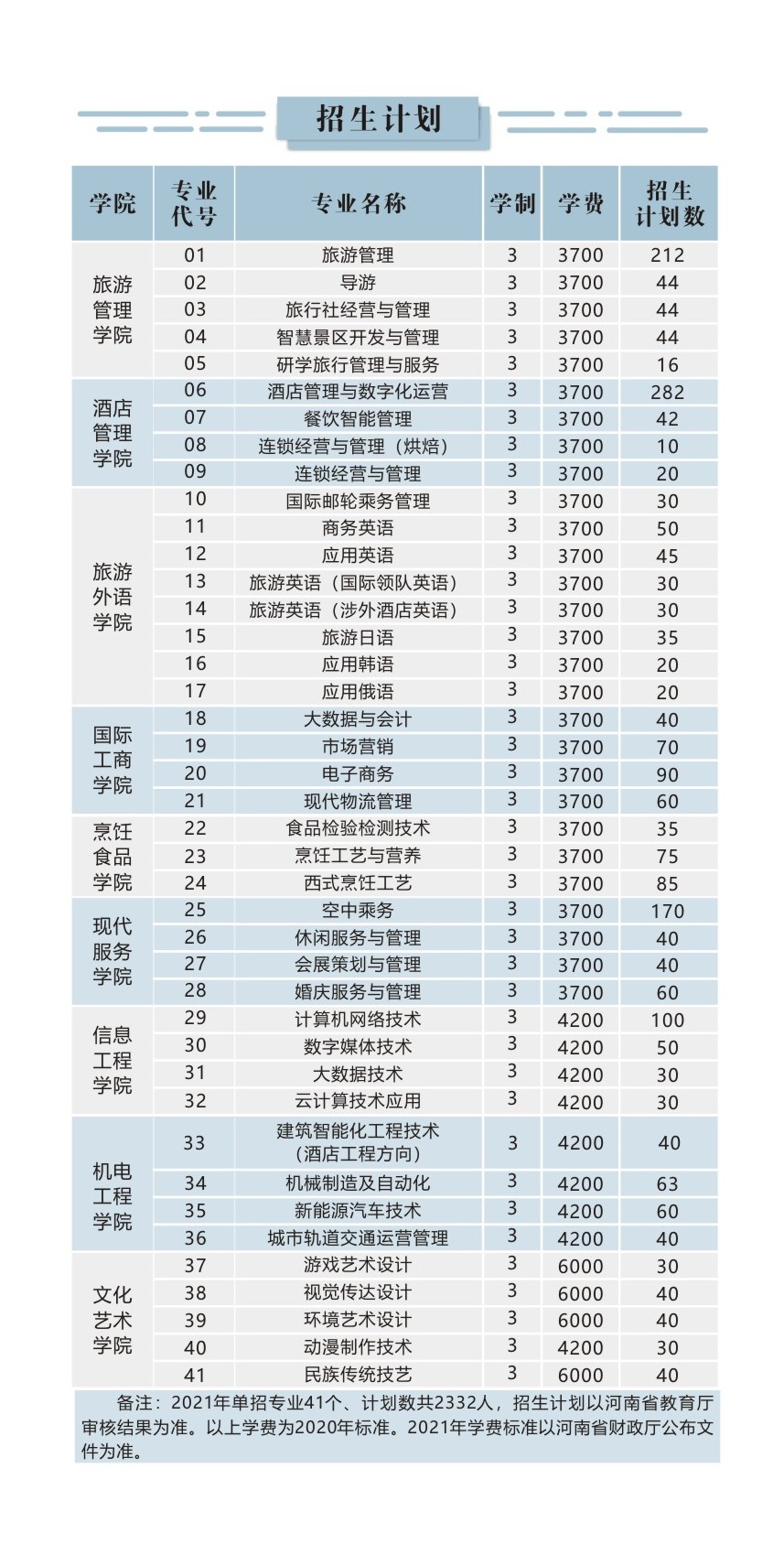 郑州旅游职业学院2021年单招招生简章