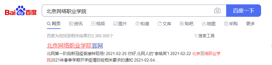 考生使用电脑登陆北京网络职业学院官网http://www.bjwlxy.org.cn