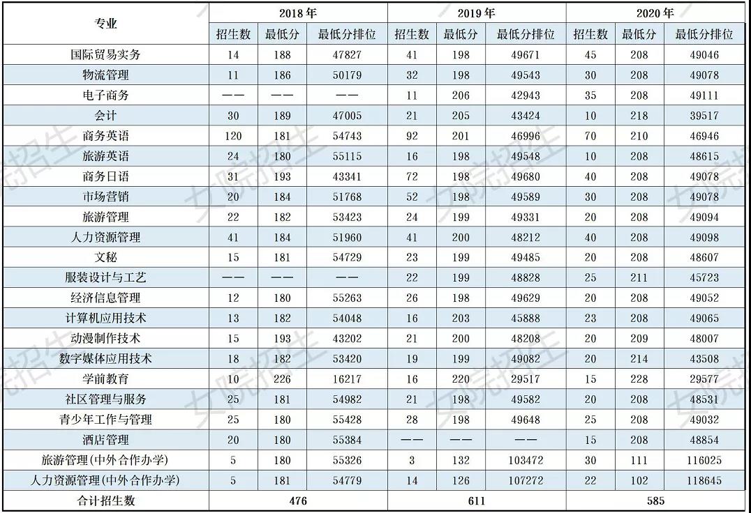 2018-2020年“3+证书”录取分数