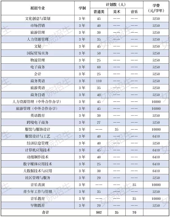 高职专业学院拟招生计划表