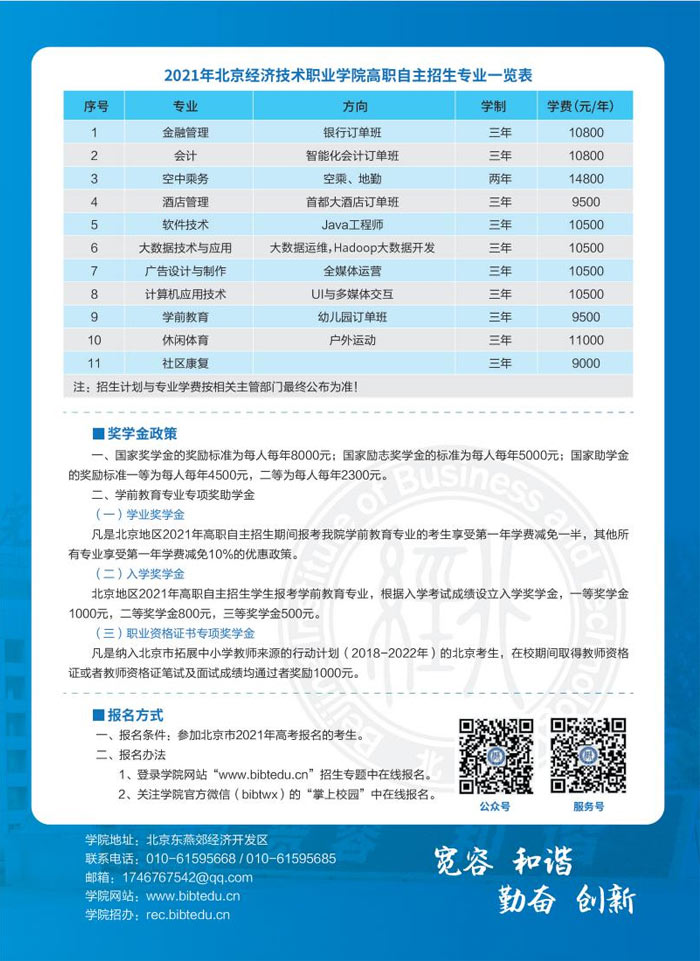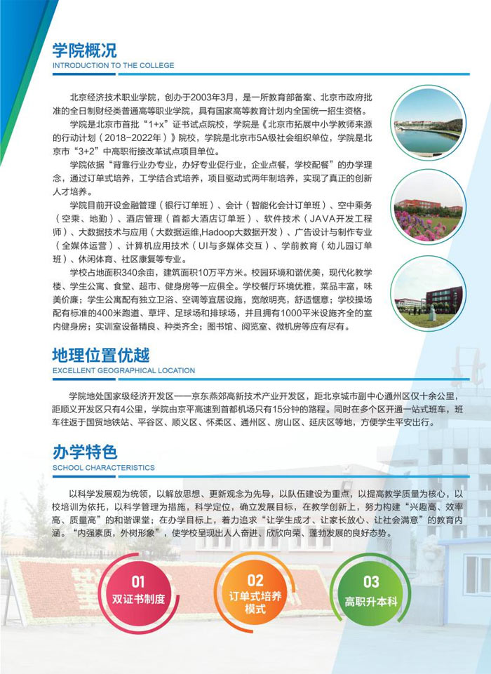 学校名称:北京工业职业技术学院 办学类型:全日制公办普通高校学校代码: 10853 办学层次:专科北京工业职业技术学院创建于1956年,隶属北京市教育委员会,是教育部批准独立设置的一所学科类别齐全、面向全国招生的普通高等职业学校,2019年成为北京市“特色高水平职业院校”建设单位,2019....