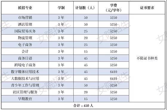 注:1.只招女生。