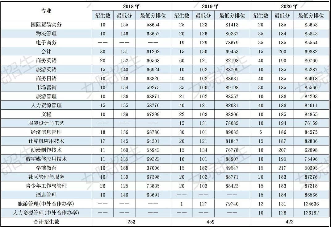 我校毕业生深受用人单位青睐,就业率历年保持在98%以上。我校每年为毕业生在校内举办大型的供需见面会,近三年每场招聘会参会企业达250多家,提供的岗位数是毕业生人数的3倍,毕业生可选的就业机会多。历届毕业生的就业单位以贸易类公司、现代服务业类单位、生产类企业、教育机构等为主。