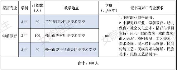 我校2021年春季高考拟招生计划总数2225人。学考招生计划1087人,其中普通类982人,美术类35人,音乐类70人;3+证书招生计划450人;自主招生(面向高中生)招生计划90人;自主招生(高职专业学院)招生计划180人;中高职贯通三二分段招生计划 418人。具体招生计划以广东省教育考试院公布为准。