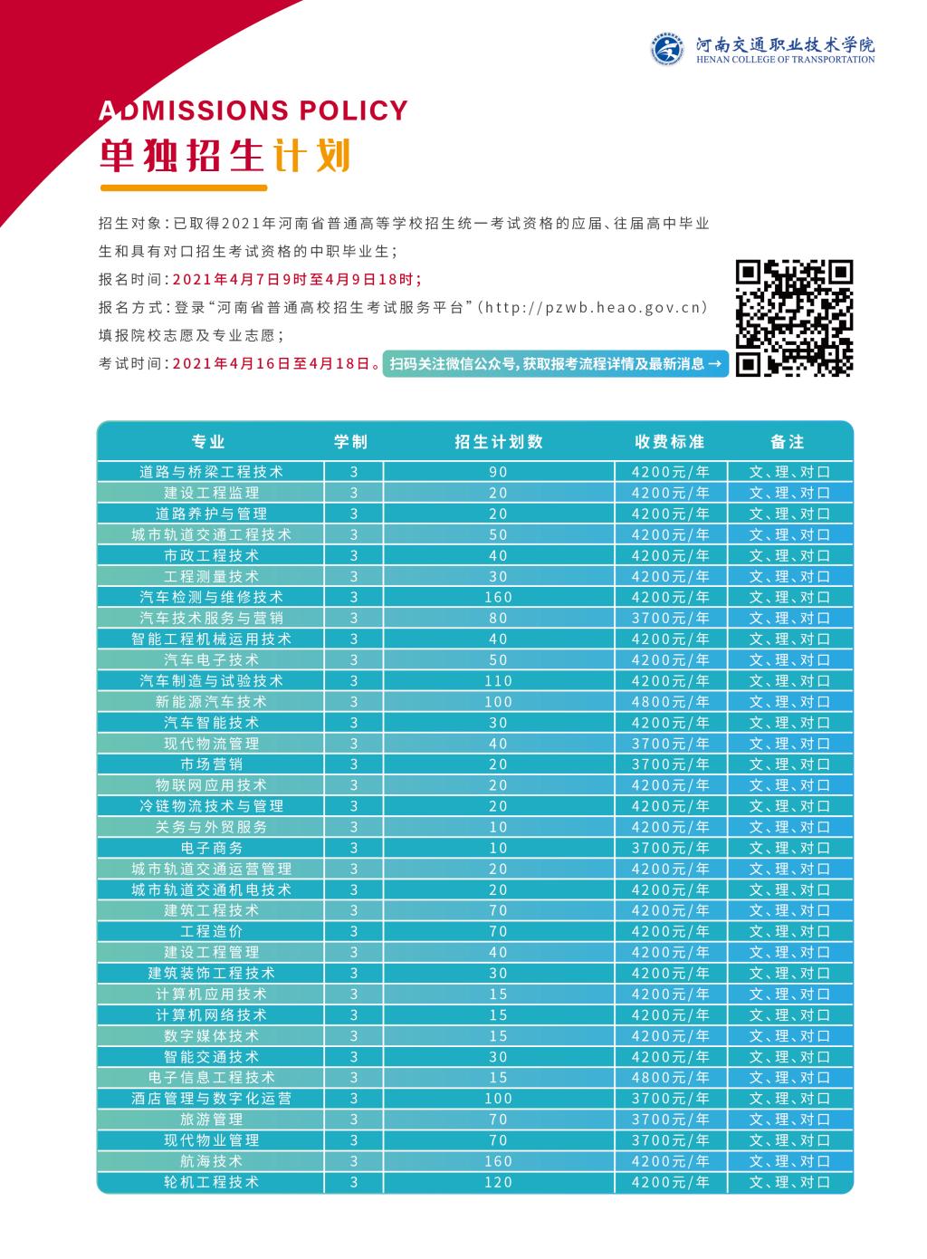 第一章 总则 第一条 根据新疆维吾尔自治区教育考试院《关于做好自治区2021年普通高职(专科)单独招生工作的通知》文件精神。我院2021年继续开展单独招生工作,积极进行改革探索,完善分类单招考试和录取机制,遵循公平、公正、公开的原则,选拔适合自身培养模式并热爱高职教育的优质生源,进....