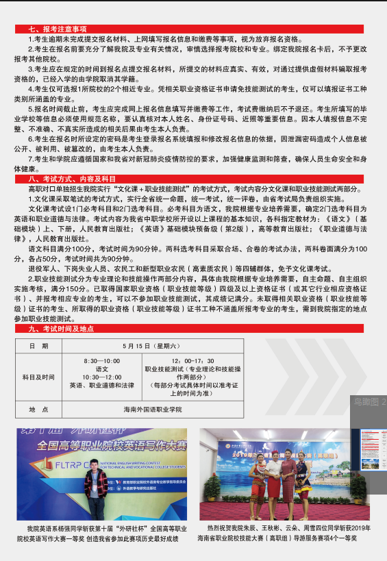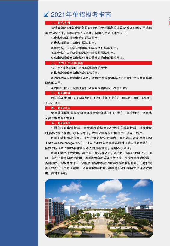 第一章 总则 第一条 根据新疆维吾尔自治区教育考试院《关于做好自治区2021年普通高职(专科)单独招生工作的通知》文件精神。我院2021年继续开展单独招生工作,积极进行改革探索,完善分类单招考试和录取机制,遵循公平、公正、公开的原则,选拔适合自身培养模式并热爱高职教育的优质生源,进....