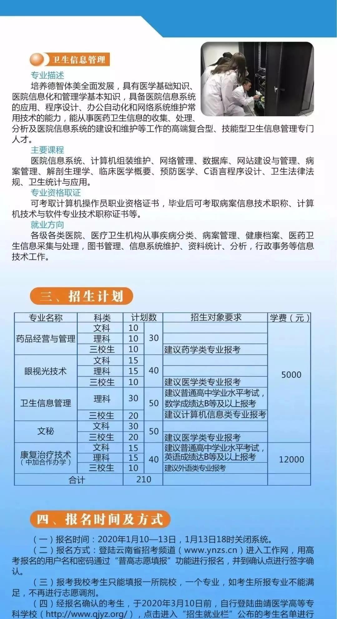 曲靖医学高等专科学校2021年高职单招招生简章