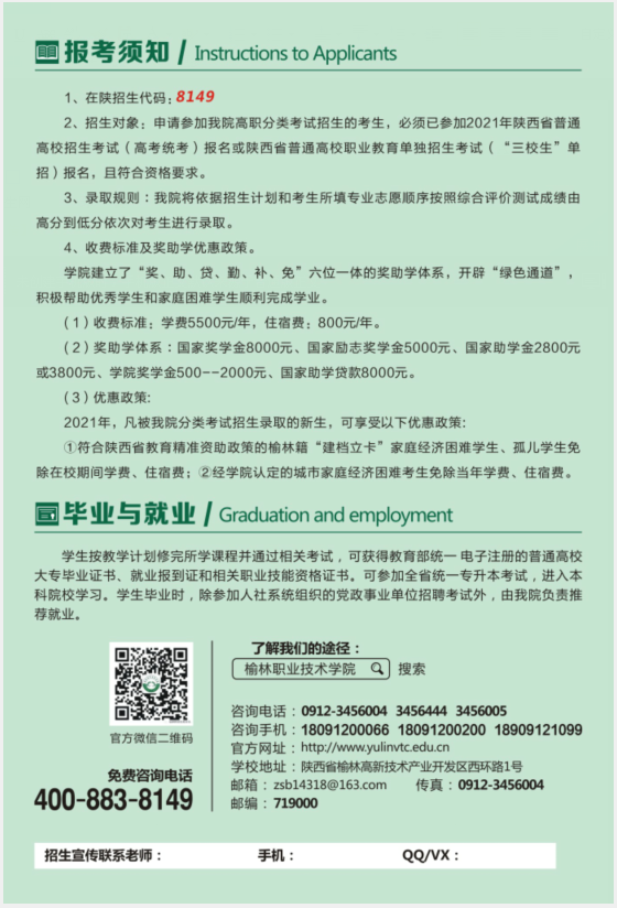 第一章 总则 第一条 根据新疆维吾尔自治区教育考试院《关于做好自治区2021年普通高职(专科)单独招生工作的通知》文件精神。我院2021年继续开展单独招生工作,积极进行改革探索,完善分类单招考试和录取机制,遵循公平、公正、公开的原则,选拔适合自身培养模式并热爱高职教育的优质生源,进....