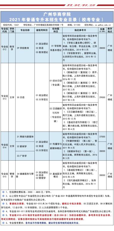 2021年广州华商学院普通专升本招生简章专业介绍
