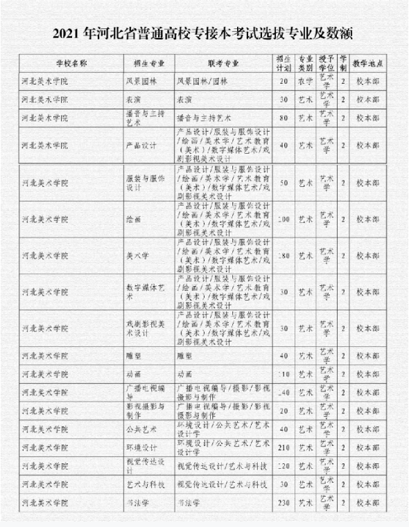 河北美术学院2021年专科接本科(专升本)招生简章
